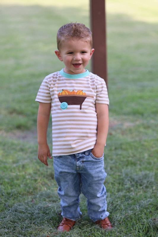 Pumpkin Harvest Boys Tan Stripe Knit Shirt